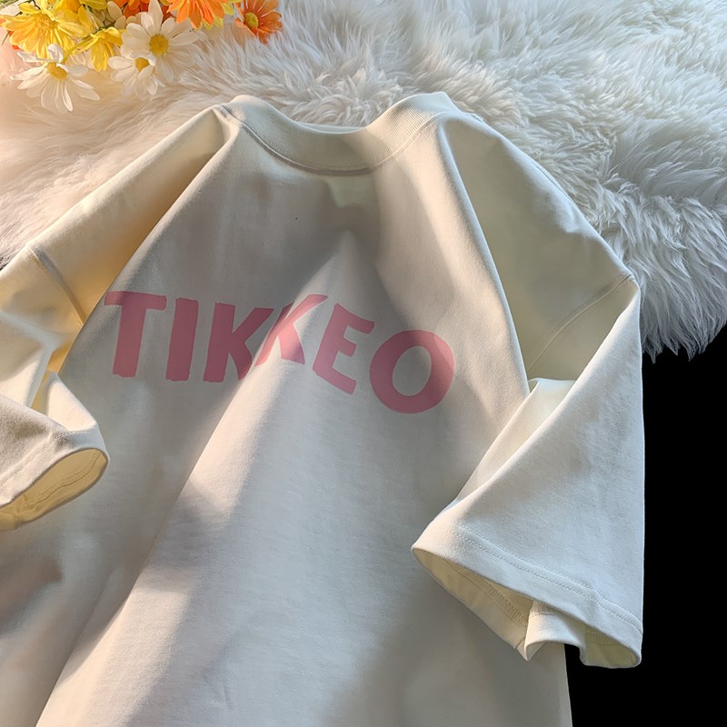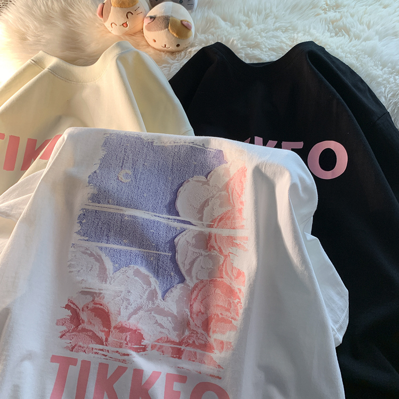 短袖T恤男2024新款情侣小清新印花小众薄款半袖夏季圆领打底上衣