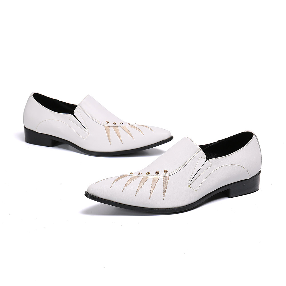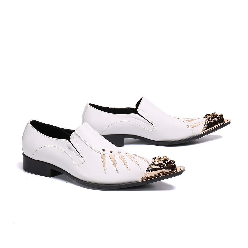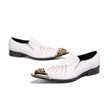 舞台尖头潮男鞋金色铁头美发师皮鞋欧美套脚懒人鞋小码低帮刺绣鞋