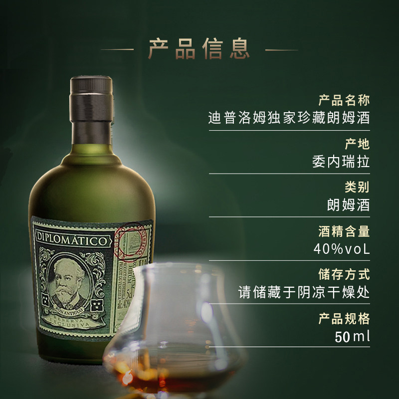【官方旗舰店】DIPLOMATICO迪普洛姆独家外交官珍藏朗姆酒50ml