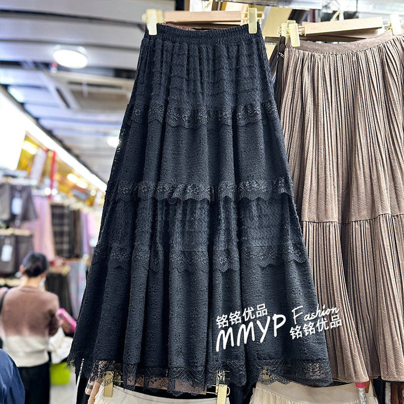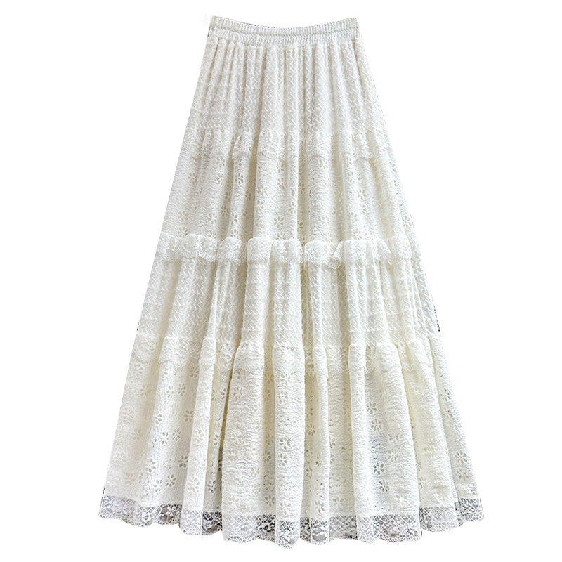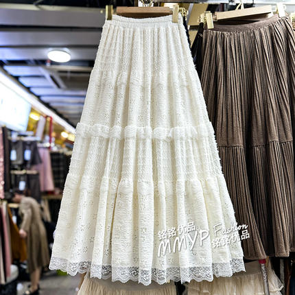冬季长款白色蕾丝纱裙蛋糕裙半身裙女秋冬2025新款半裙长裙子