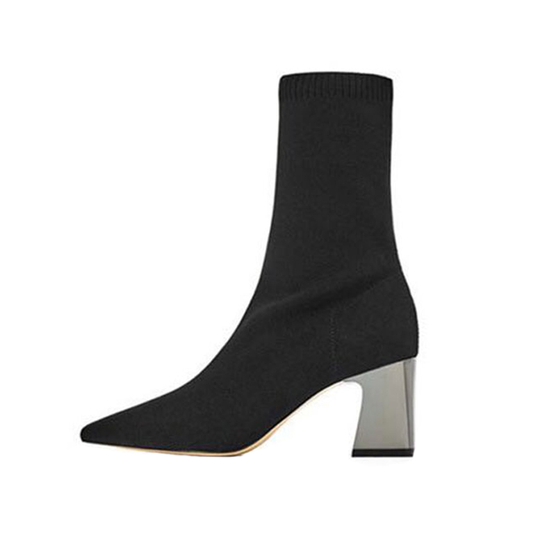 秋冬天高跟短筒尖头弹力瘦瘦靴