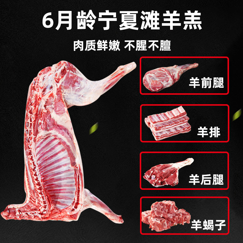 宁夏盐池滩羊肉新鲜冷冻15斤半只羊现杀烤全羊整只羊腿羊排羊蝎子