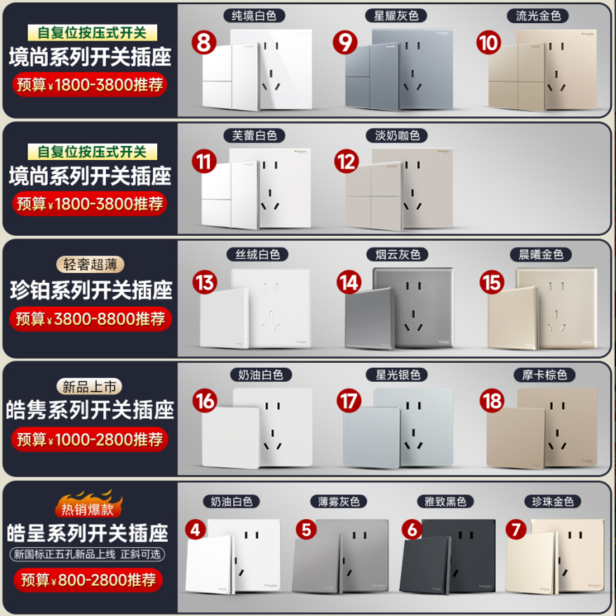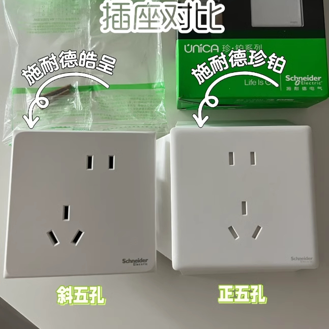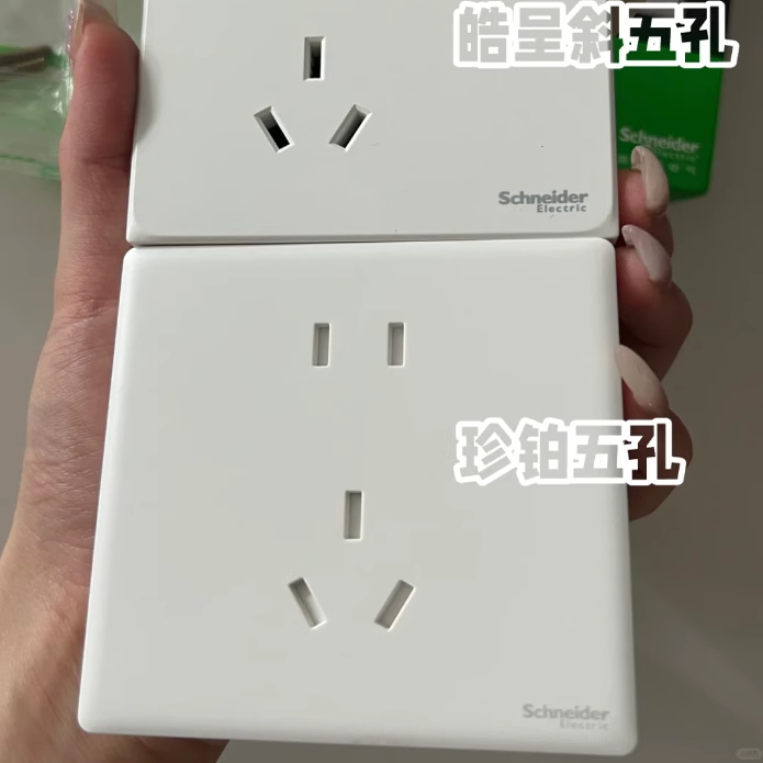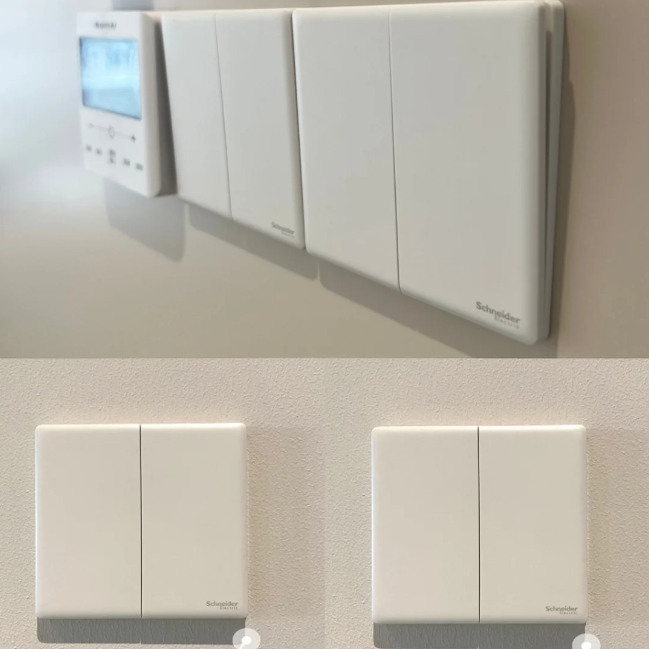 施耐德开关插座面板皓呈珍铂奶油白暗装家用墙壁五孔一二开单双控