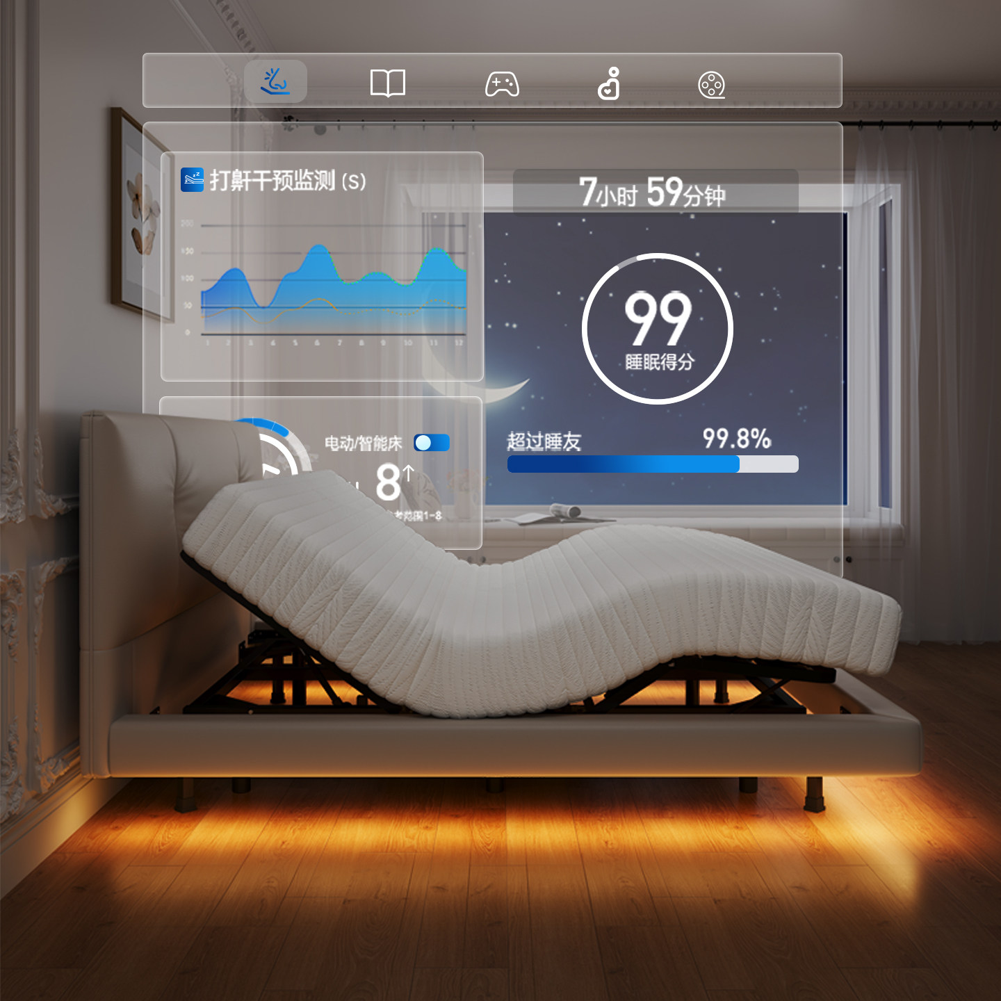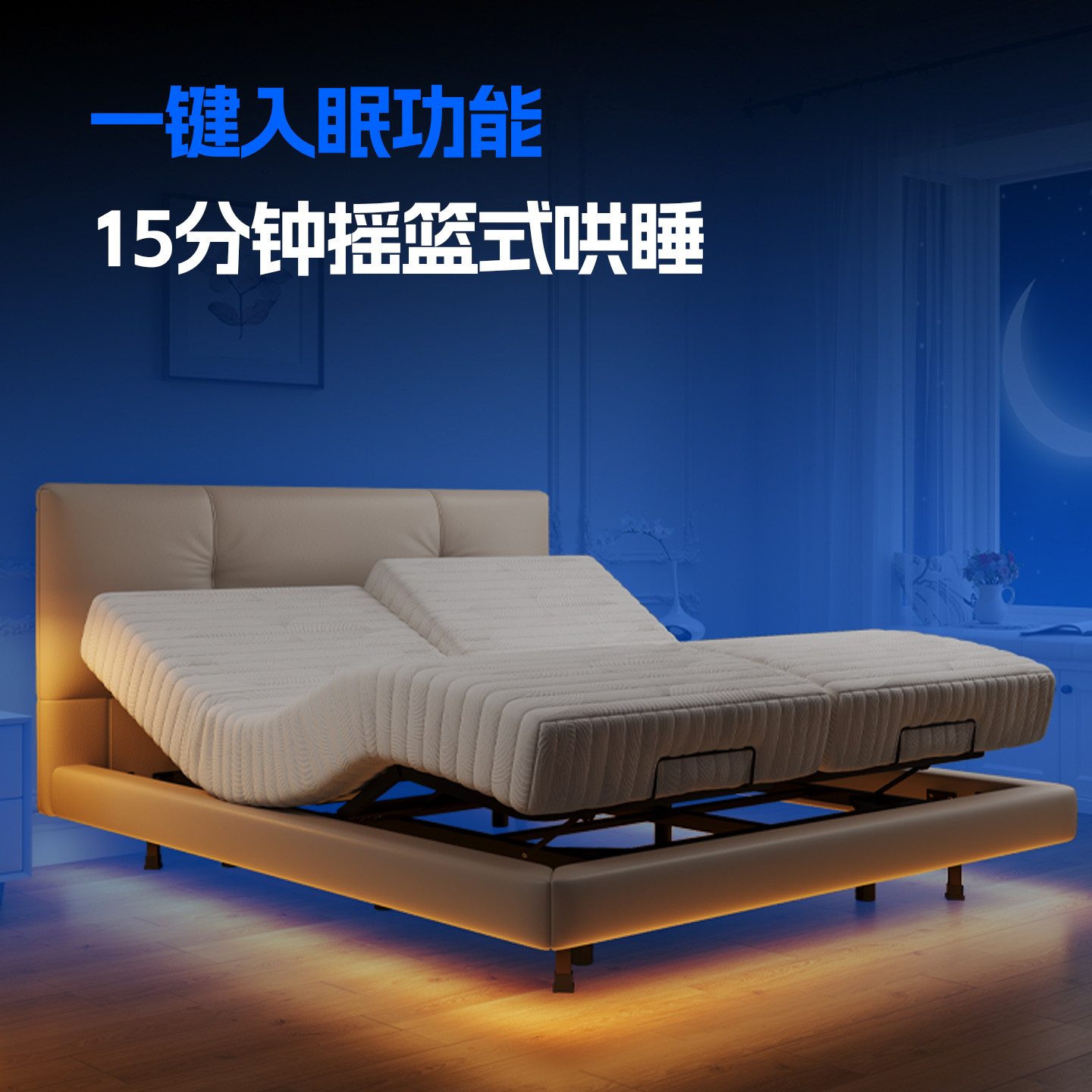 月光床真皮法式奶油风双人夫妻互不打扰电动AI智能升降全自动哄睡
