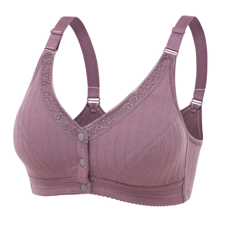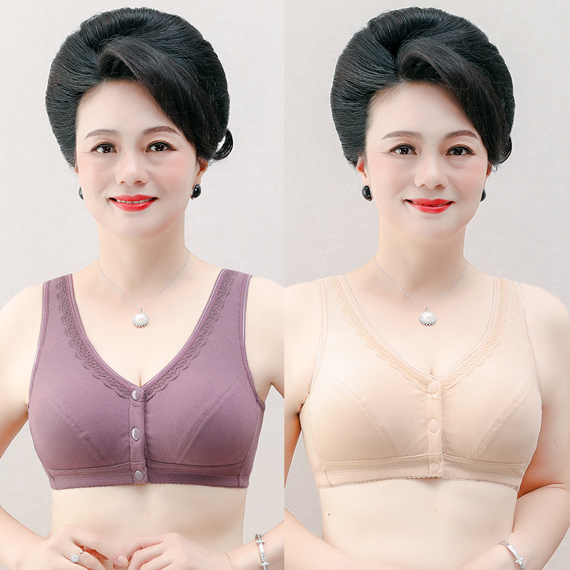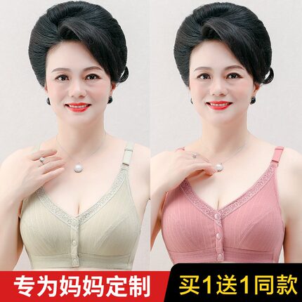 中年妈妈内衣文胸50岁中老年女前扣胸罩无钢圈纯棉背心式夏季薄款