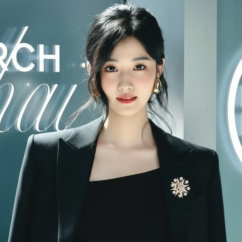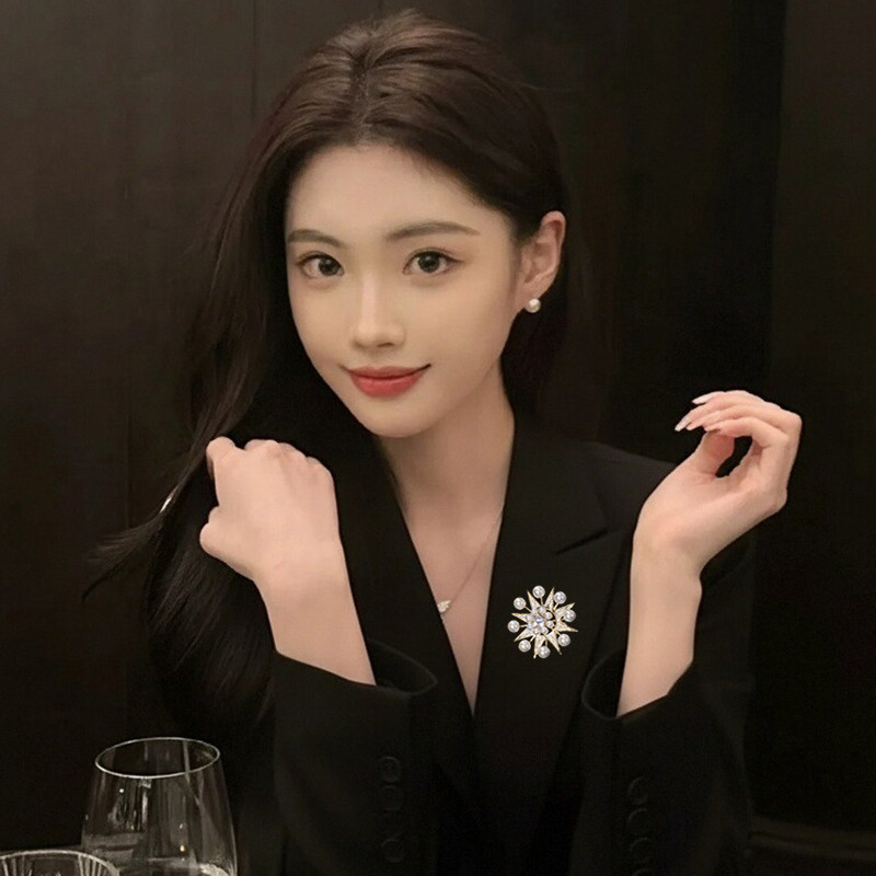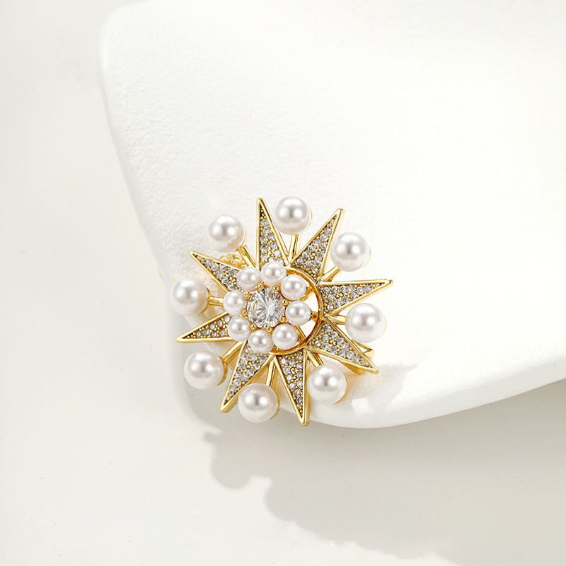 金色八芒星珍珠款胸针女高级感轻奢胸花2025新款冬季毛衣大衣别针