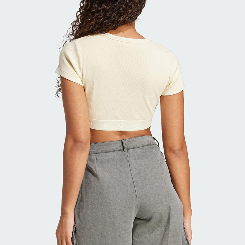 Adidas/阿迪达斯官方正品三叶草女士透气针织短款紧身T恤JD0040
