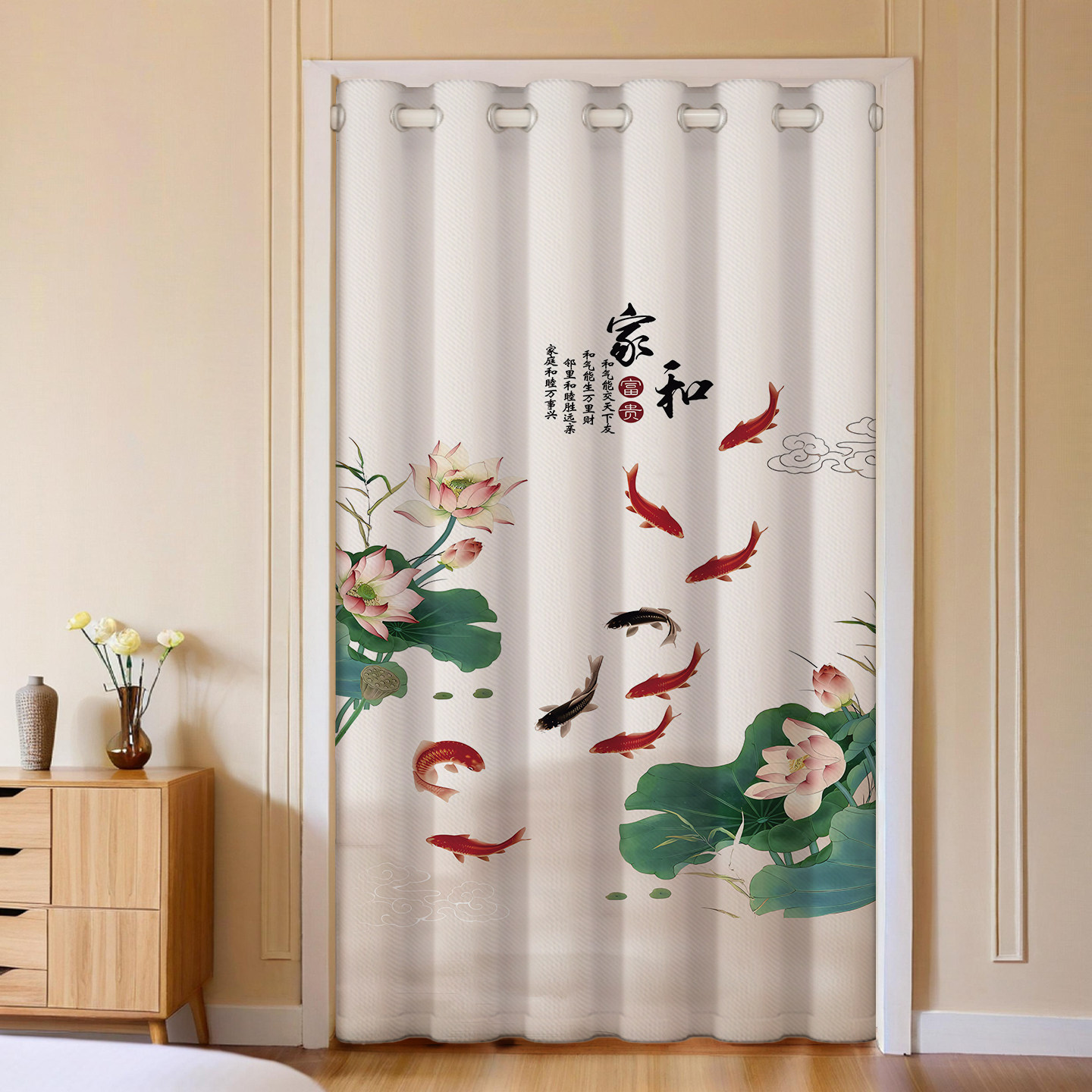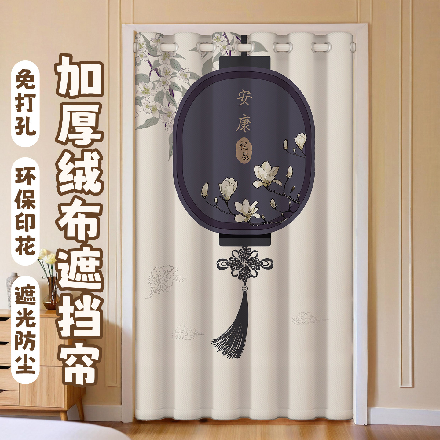 中式门帘隔断帘免打孔卧室房间空调挡风挂帘厨房卫生间门口遮挡帘