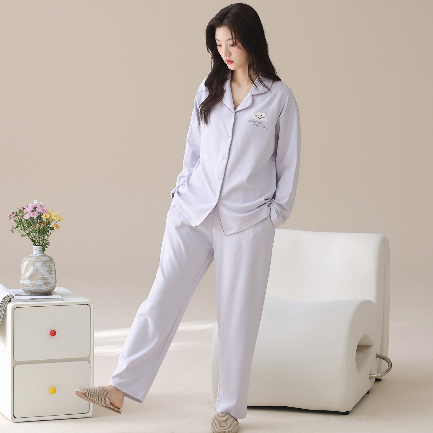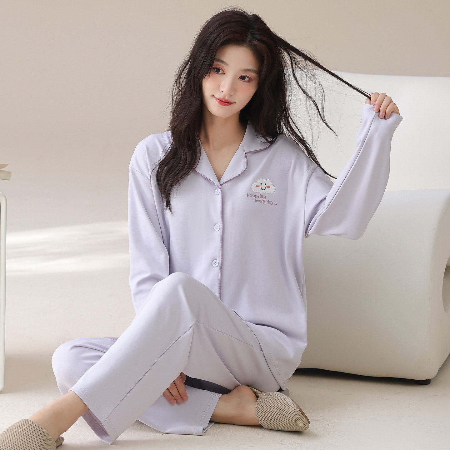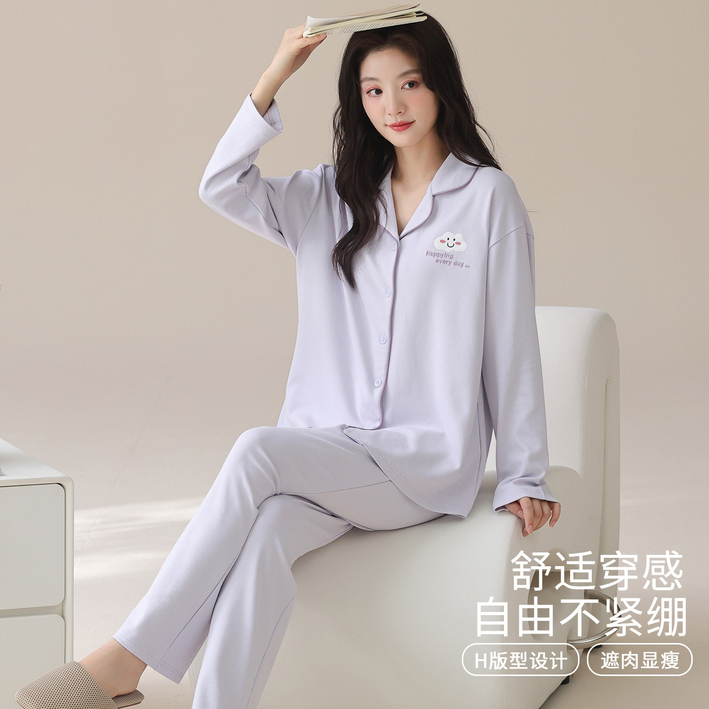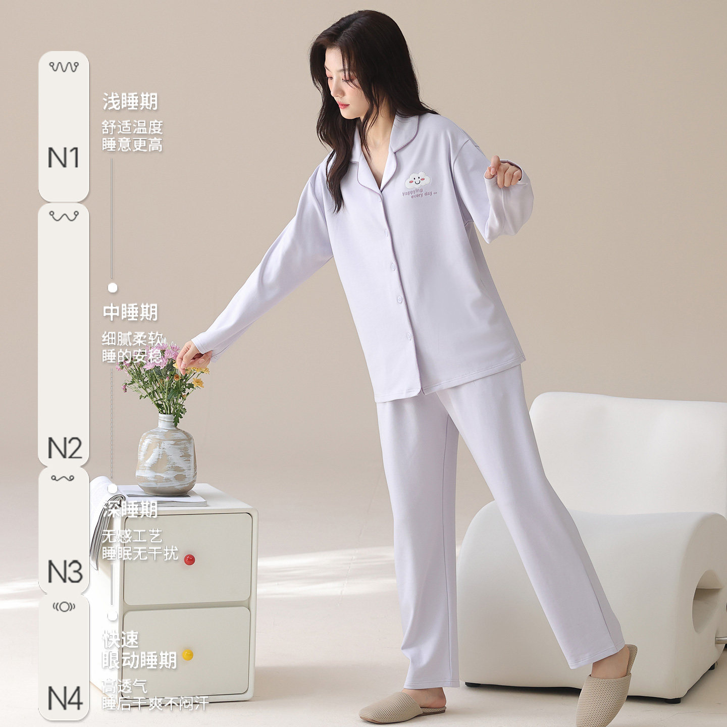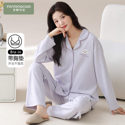 芬腾可安长袖睡衣女款2026新款纯棉带胸垫防凸点春秋款女士家居服