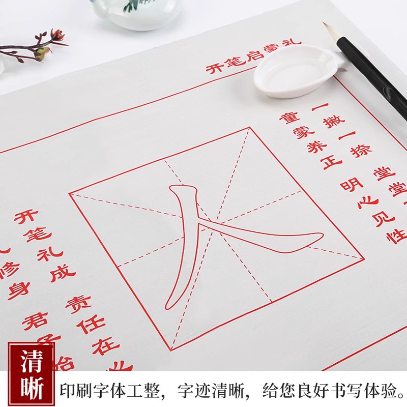 开笔礼人字帖套装人字描红纸水写布卷轴毛笔毛笔人字幼儿园小学生