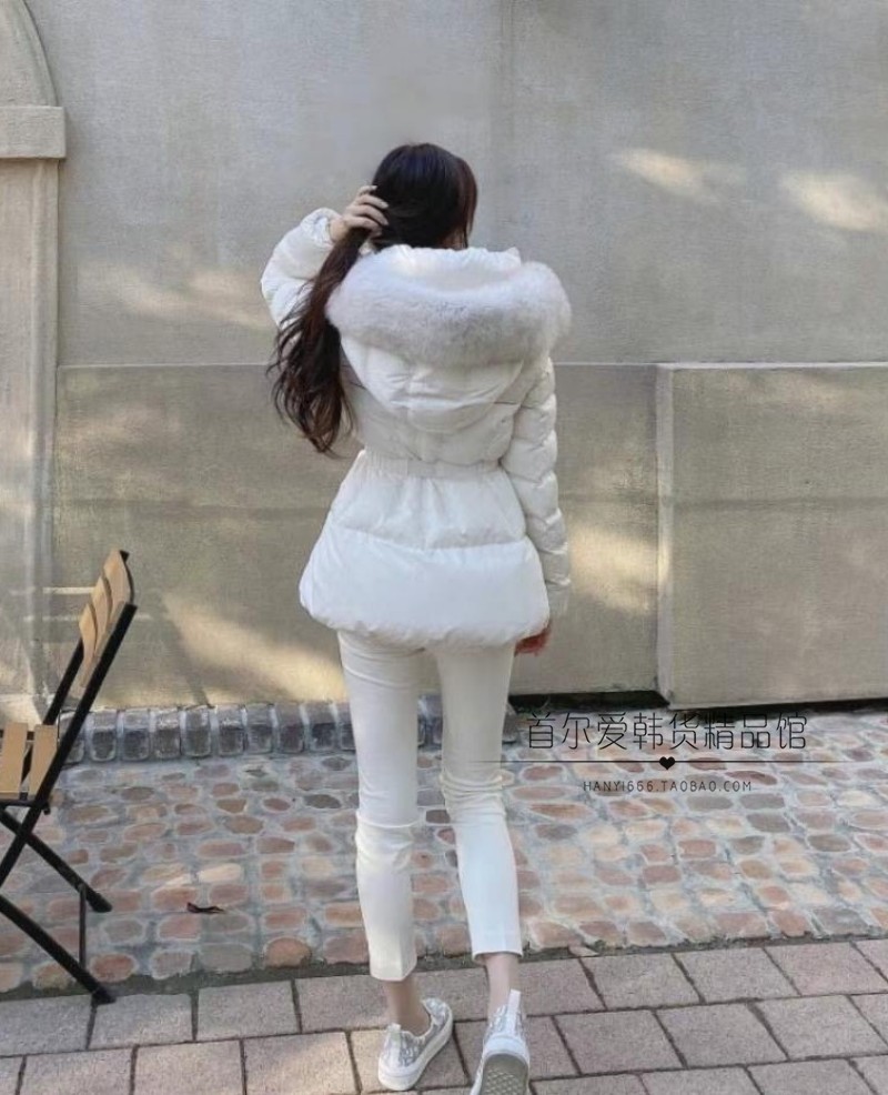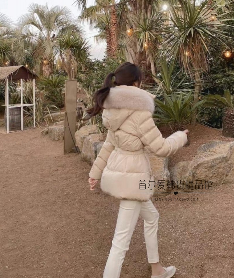 现!韩国代购狐狸毛领修身短款羽绒服 25冬加厚保暖鸭绒连帽外套