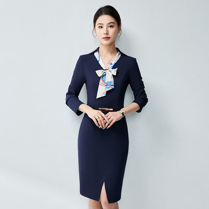 职业连衣裙女春秋新款气质珠宝店售楼部酒店前台接待美容院