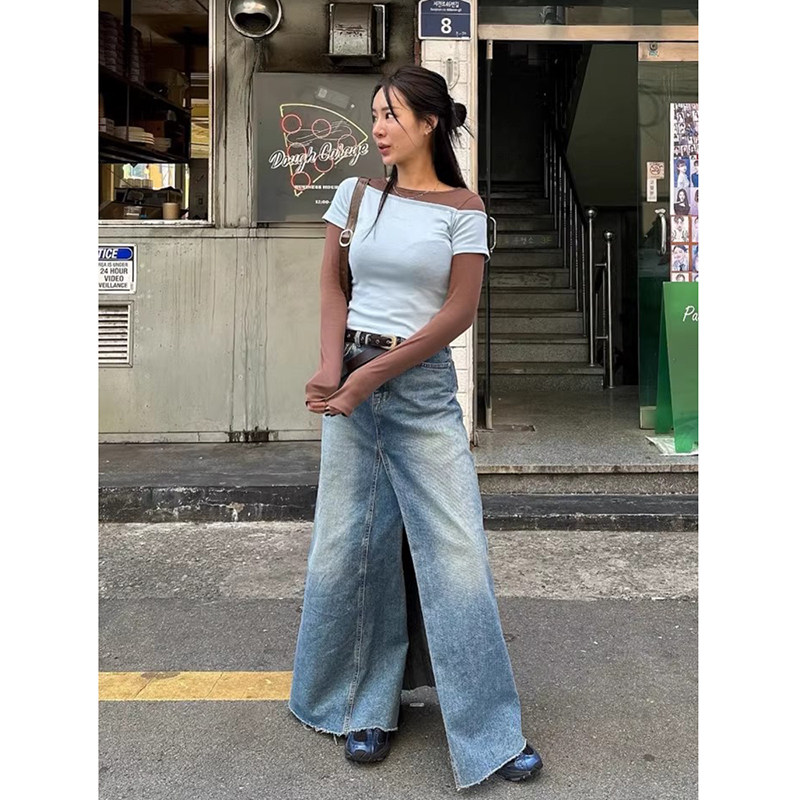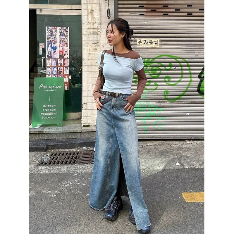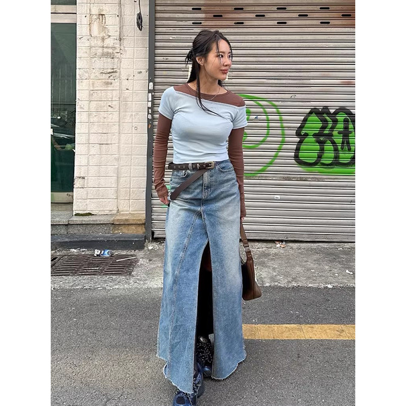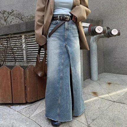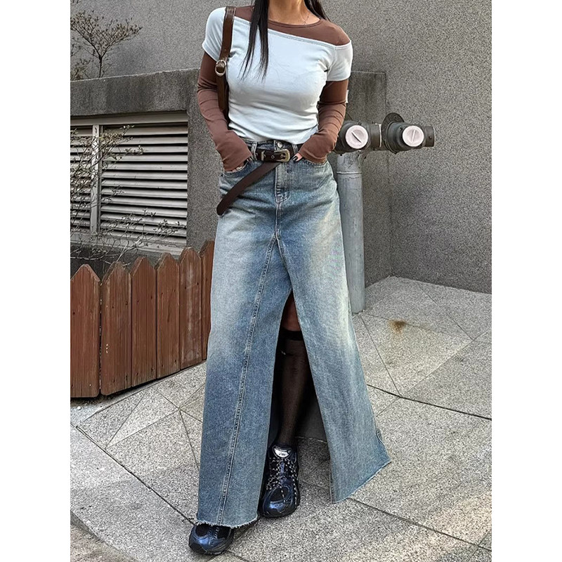 良良家裁切设计开叉牛仔半身裙女春季新款小众设计感高腰百搭长裙