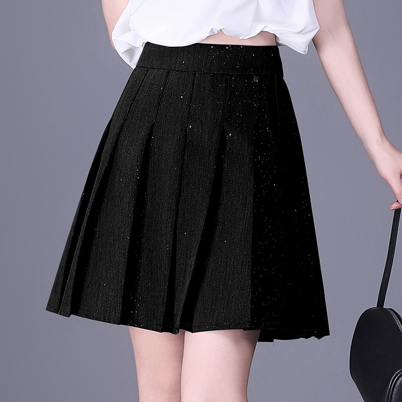 灰色百褶裙半身裙女春夏季2025新款小个子高腰显瘦短裙亮片A字裙