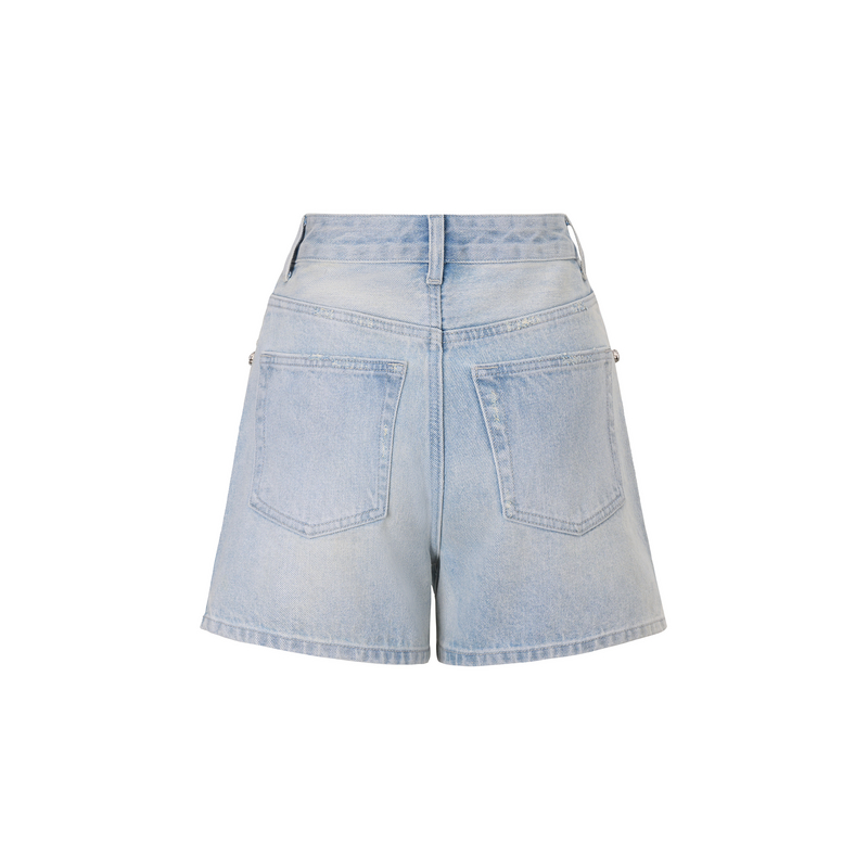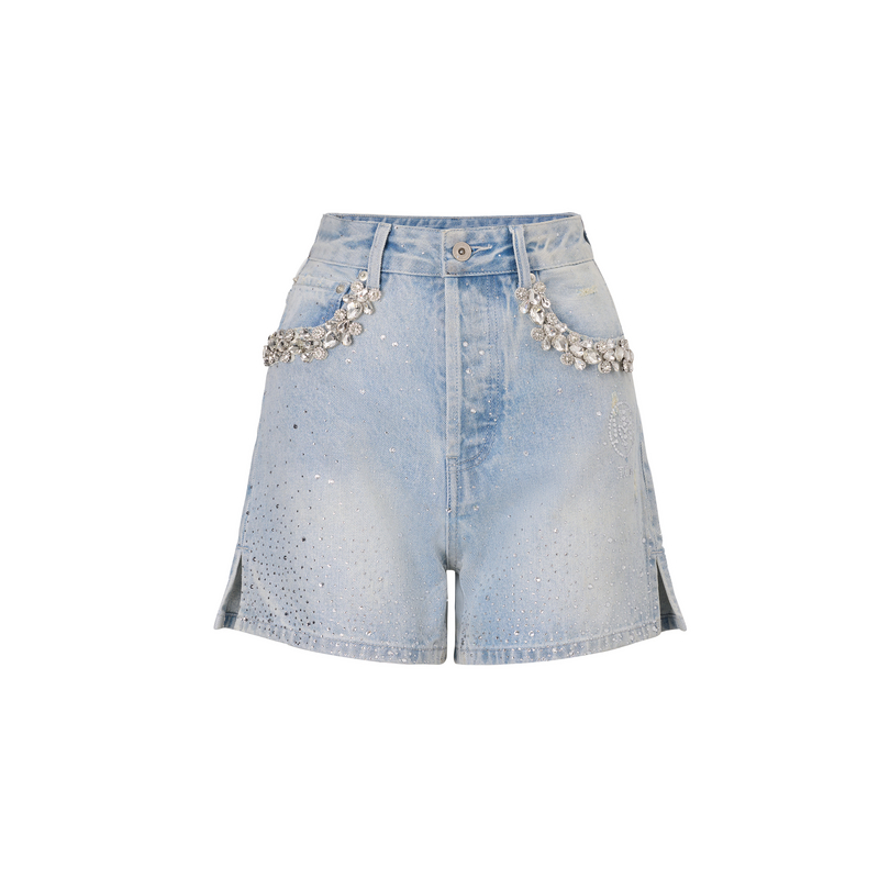 TCH烫钻时尚百搭高腰修身显瘦辣妹牛仔短裤女夏季新款