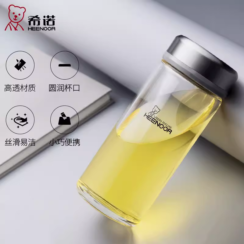 希诺玻璃杯单层茶杯男士泡茶专用便携大容量矮胖西诺水杯定制9007