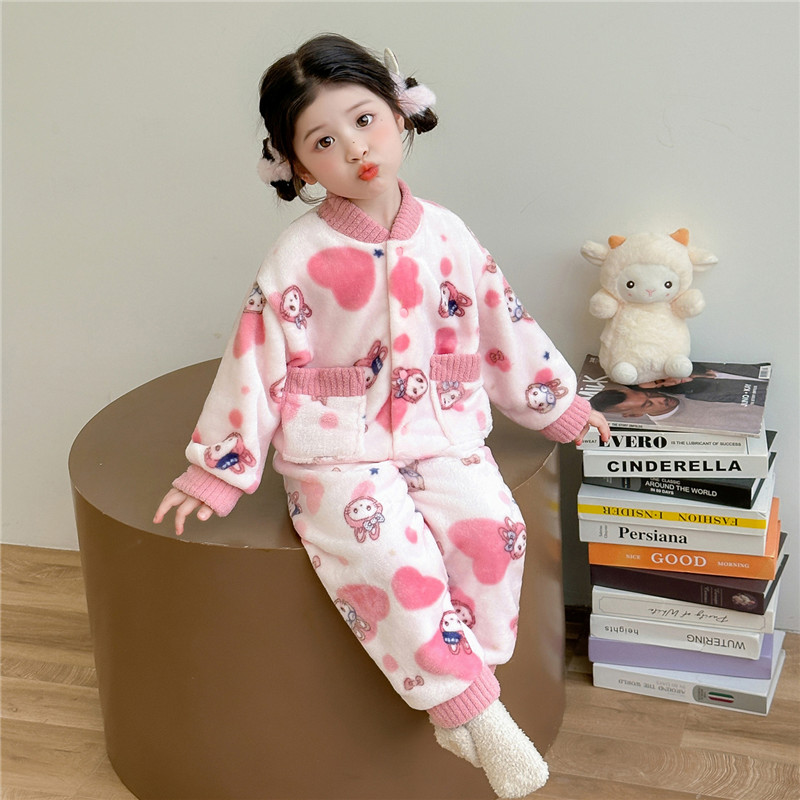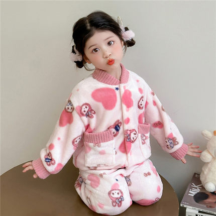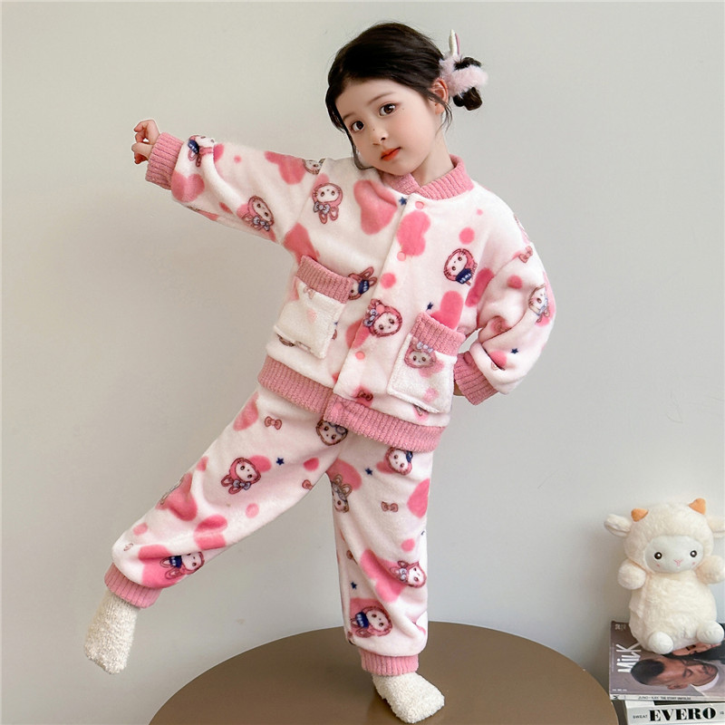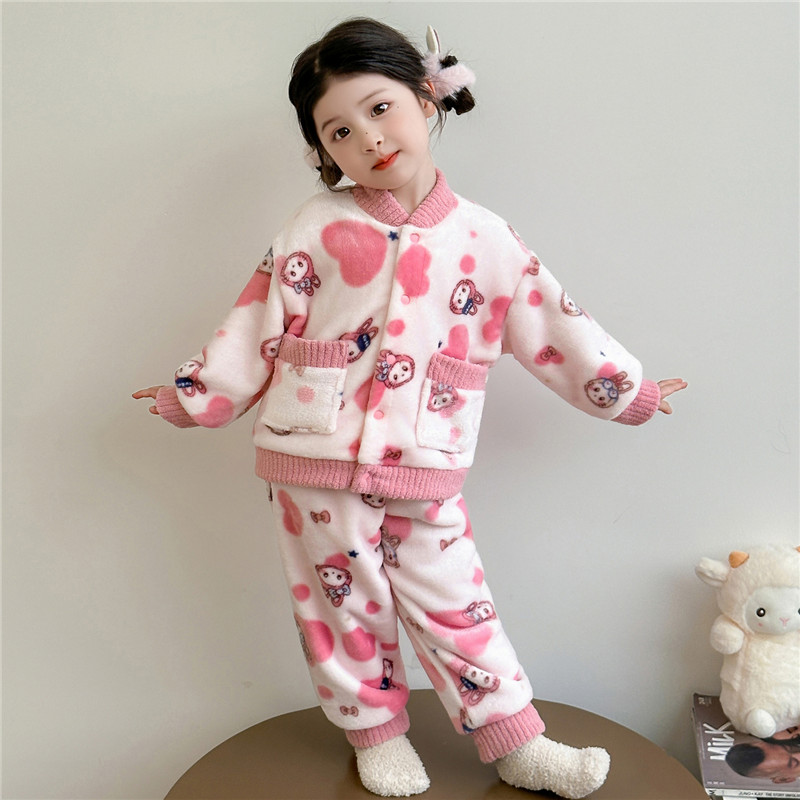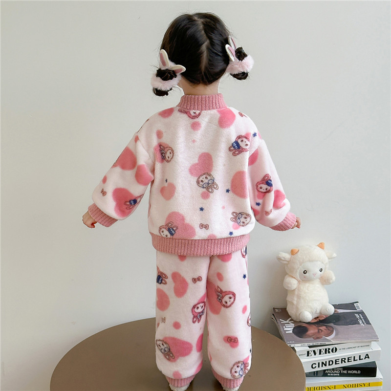 儿童睡衣女童秋冬款法兰绒宝宝卡通可爱拉布布家居服套装2025新款
