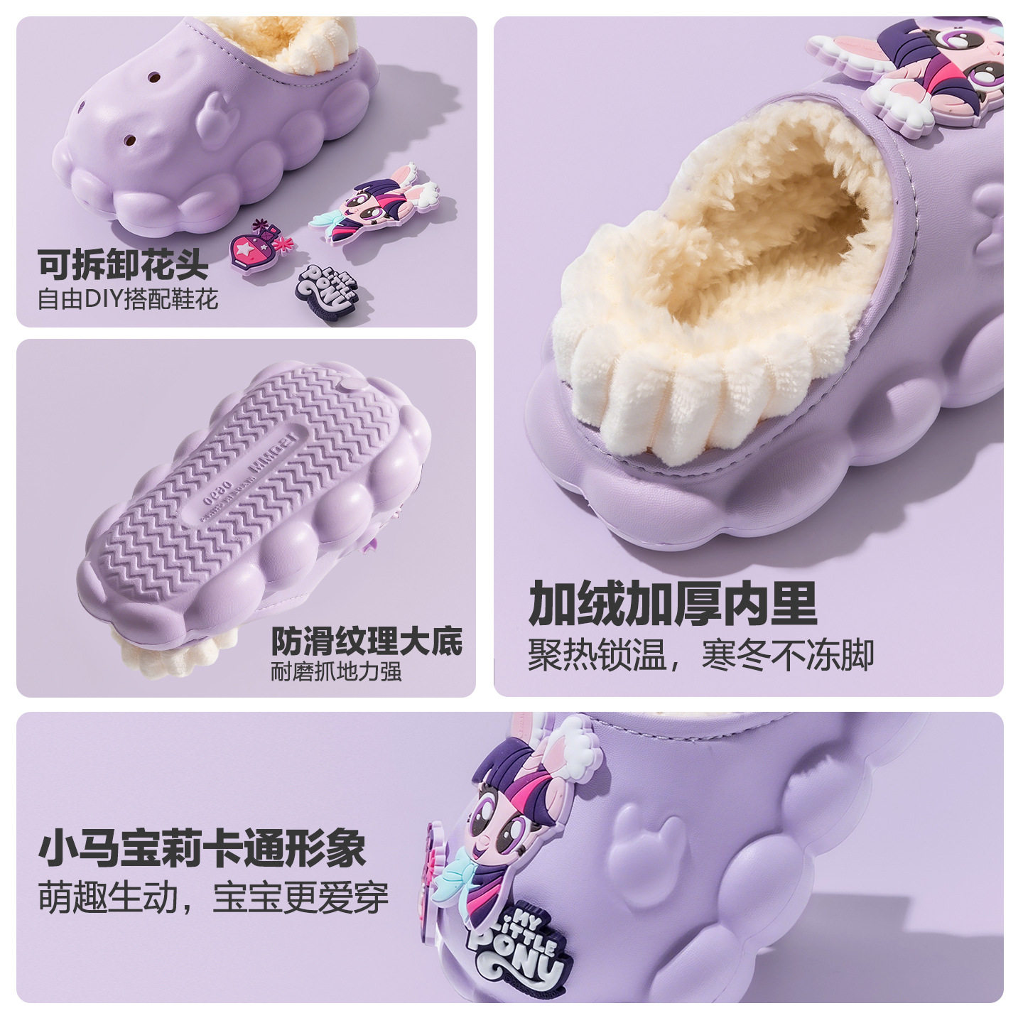 新款小马宝莉儿童棉拖鞋防滑秋冬季居家防水包头棉鞋室内女孩棉鞋