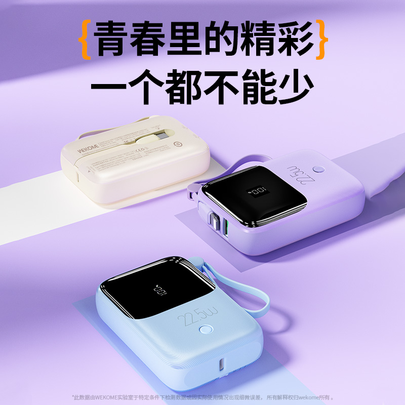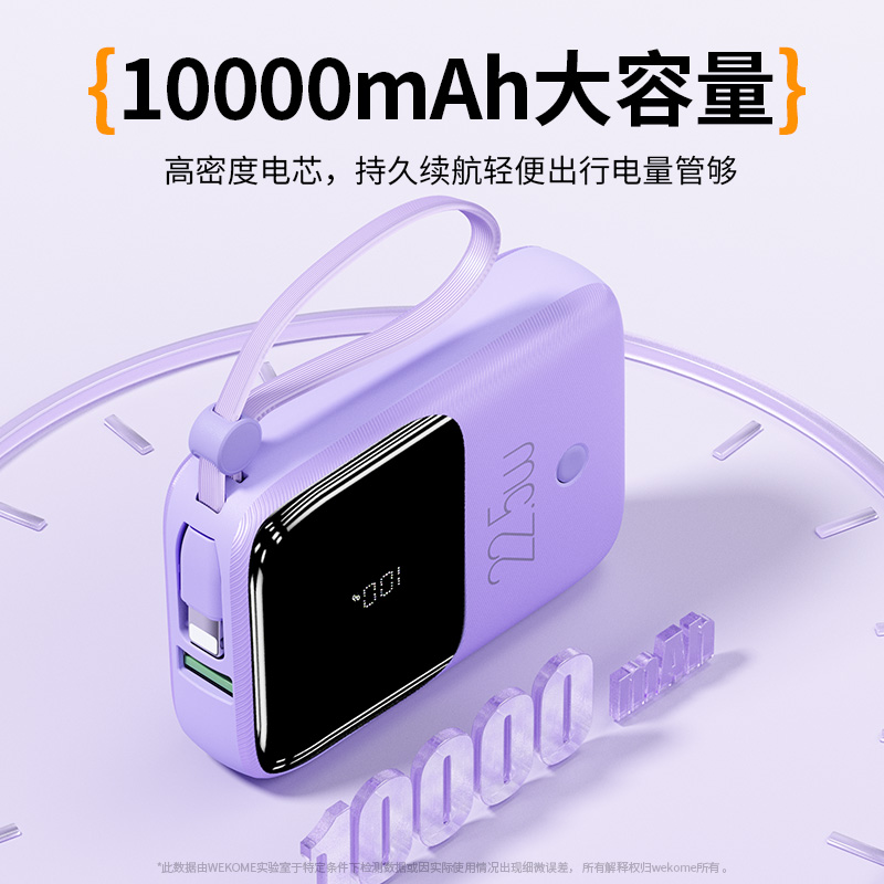 WEKOME充电宝3c认证可上飞机自带线迷你超薄小巧便携快充大容量2025新款移动电源适用苹果17iPhone15华为小米