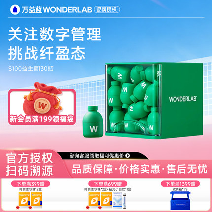 万益蓝wonderlab S100益生菌代谢小绿瓶体重管理s100益生菌30粒
