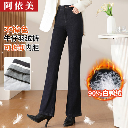 阿依美加厚牛仔高腰白鸭绒羽绒裤
