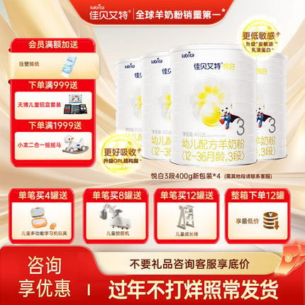 佳贝艾特婴幼儿配方羊奶粉婴儿奶粉悦白3段400g*4新国标旗舰店