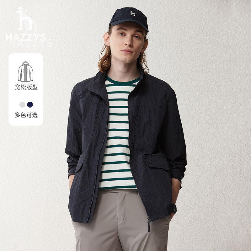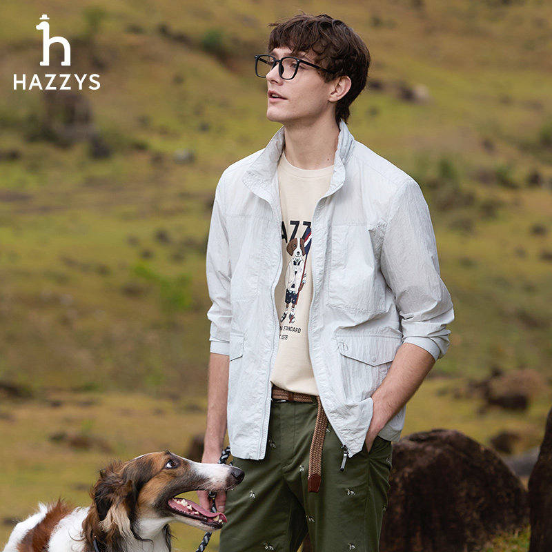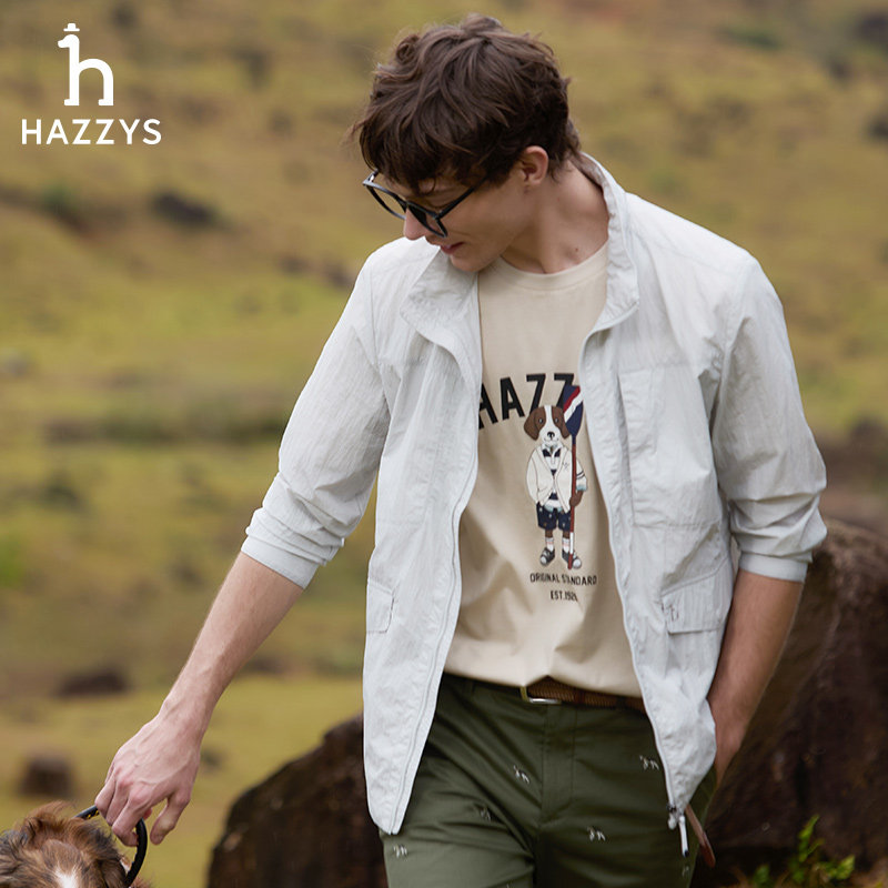 Hazzys哈吉斯奥莱春季新款男士纯色上衣长袖宽松夹克休闲时尚外套