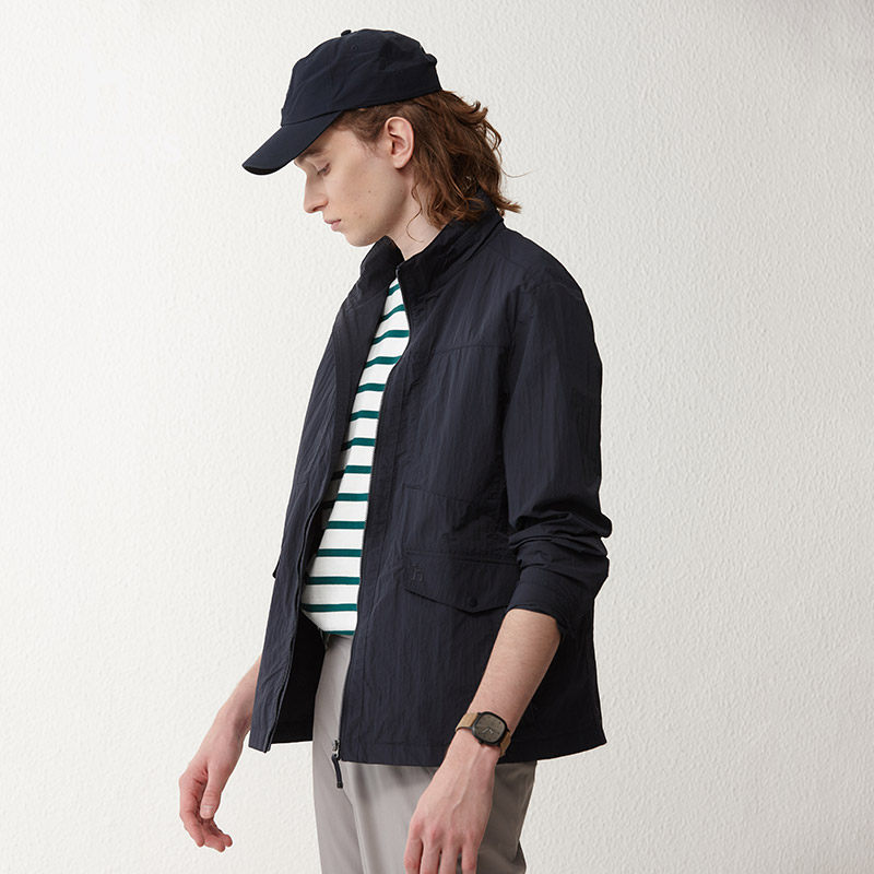 哈吉斯休闲时尚纯色长袖夹克男