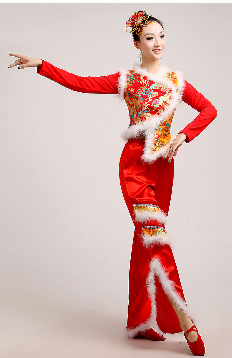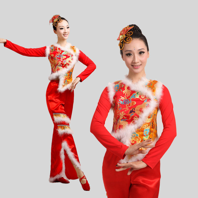 秧歌服女新款中老年广场扇子舞中国风男腰鼓喜庆风开门红演出服装