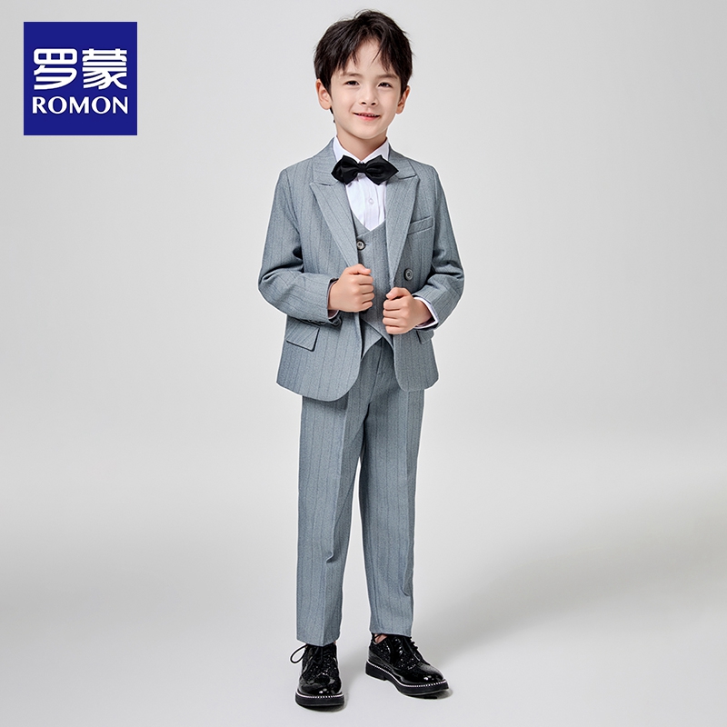 罗蒙男童西装套装帅气英伦男孩主持人演出服花童礼服婚礼儿童西服