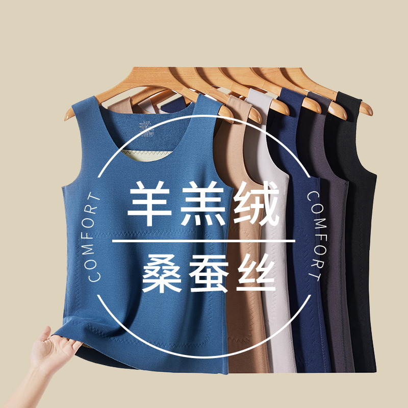 初内保暖背心男士羊绒蚕丝贴片无痕加绒加厚马甲德绒无袖打底内衣