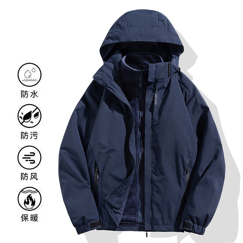 浙江台州三门冲锋衣三合一男款冬季加厚棉服可拆卸工装情侣外套潮