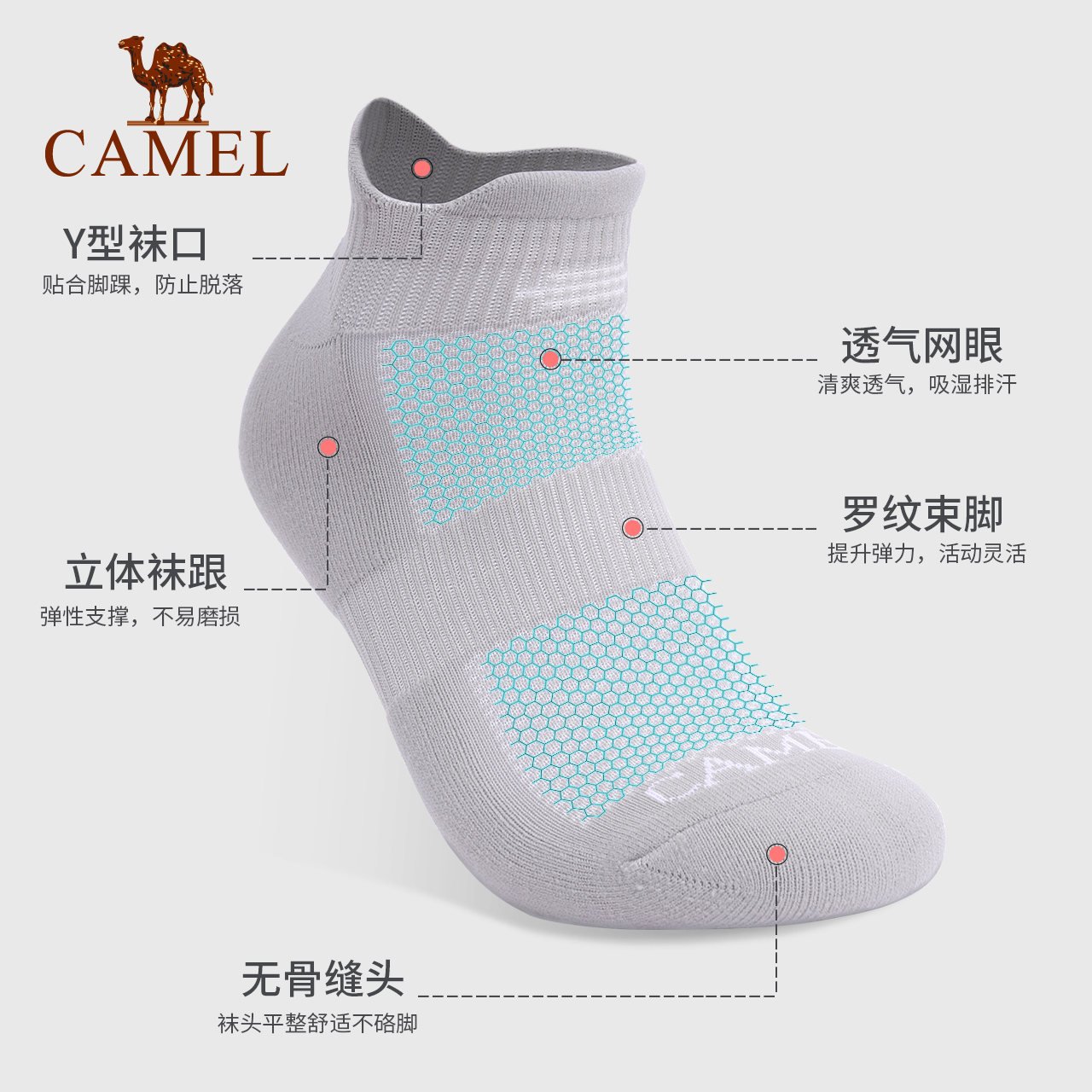 骆驼专业运动袜男女跑步袜子透气