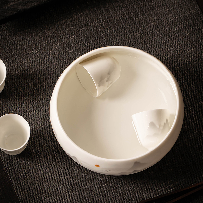 羊脂玉茶洗建水笔洗水孟洗茶杯碗德化白瓷家用大号茶具配件茶渣缸