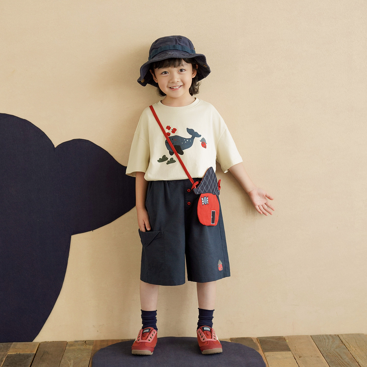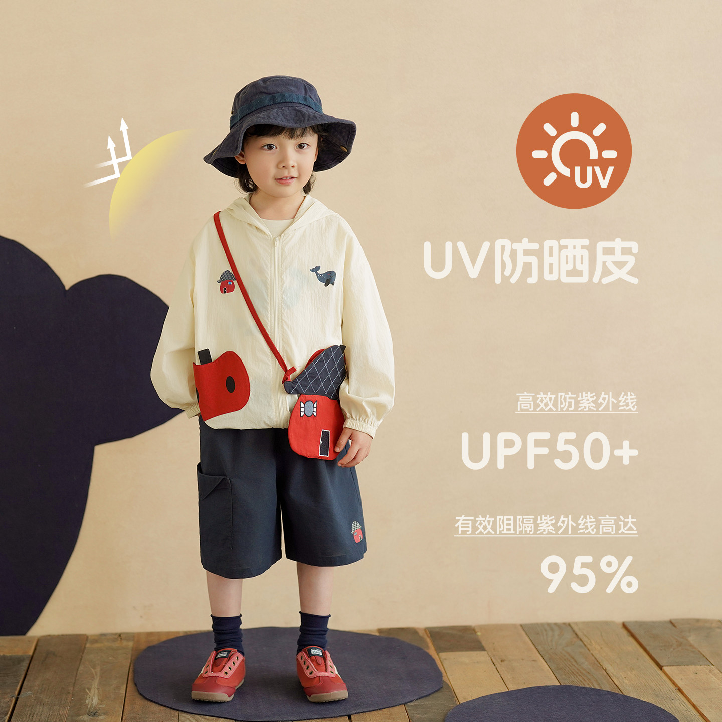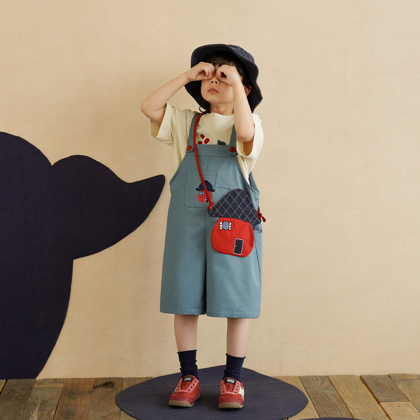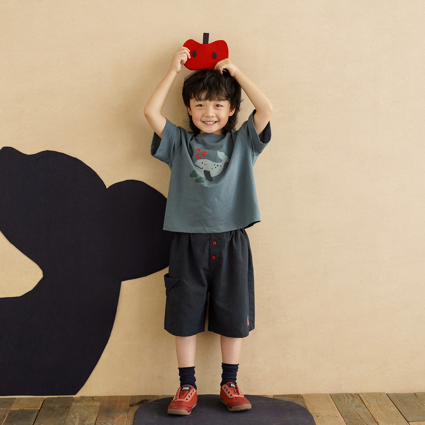 砚台家男童UPF50+防晒衣儿童纯棉短袖T恤套装夏款童装短裤背带裤