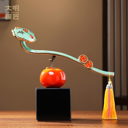 大明铜匠柿柿事事如意柿子摆件客厅玄关酒柜装饰乔迁新居之喜礼品