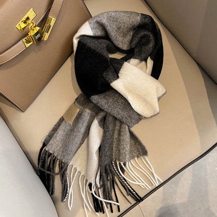新款黑白格子围巾女冬季中年爸爸老人保暖送男友男士羊绒围脖护颈