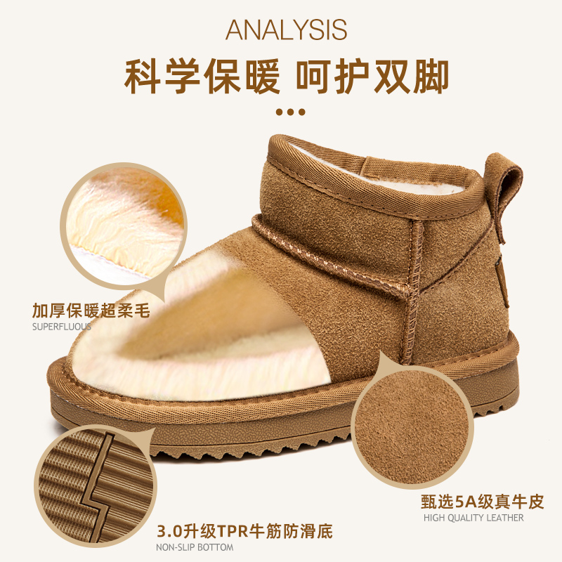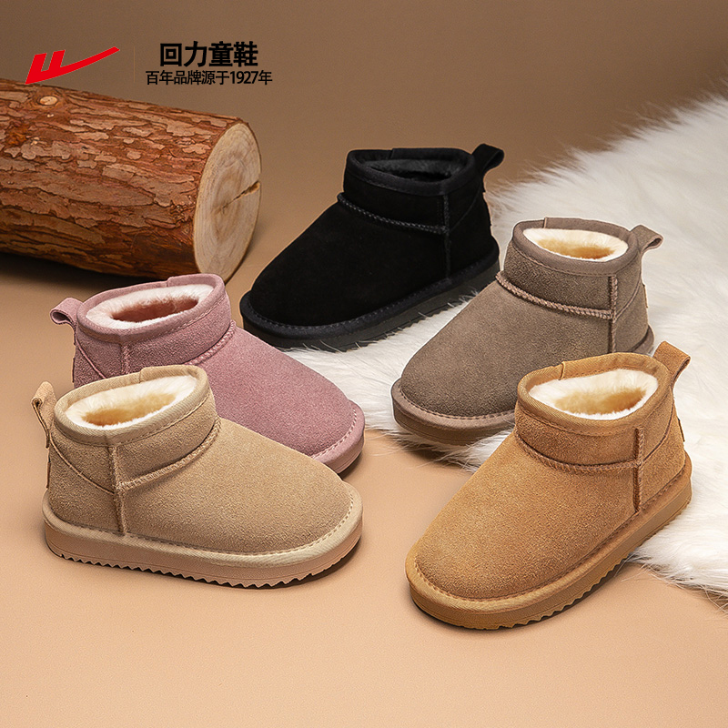 回力真皮儿童雪地靴女童冬季加绒加厚大棉鞋子防滑东北男童雪地棉