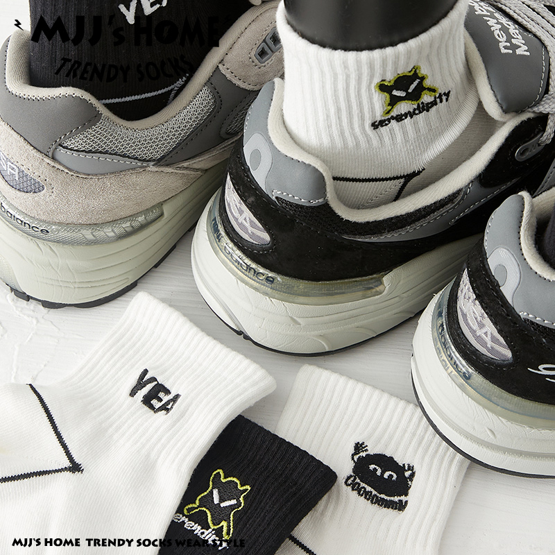潮牌卡通刺绣袜子男款短袜纯棉夏季薄款中筒袜女潮运动袜男士潮袜