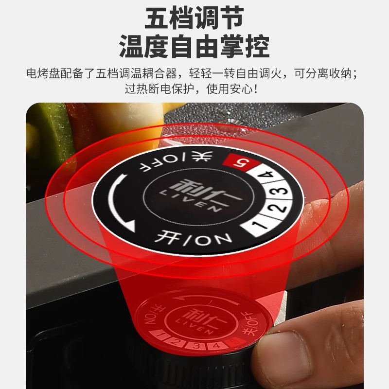 利仁电烤盘烤肉盘家用不粘电烧烤炉烤肉串机家庭室内轻烟电烤锅炉