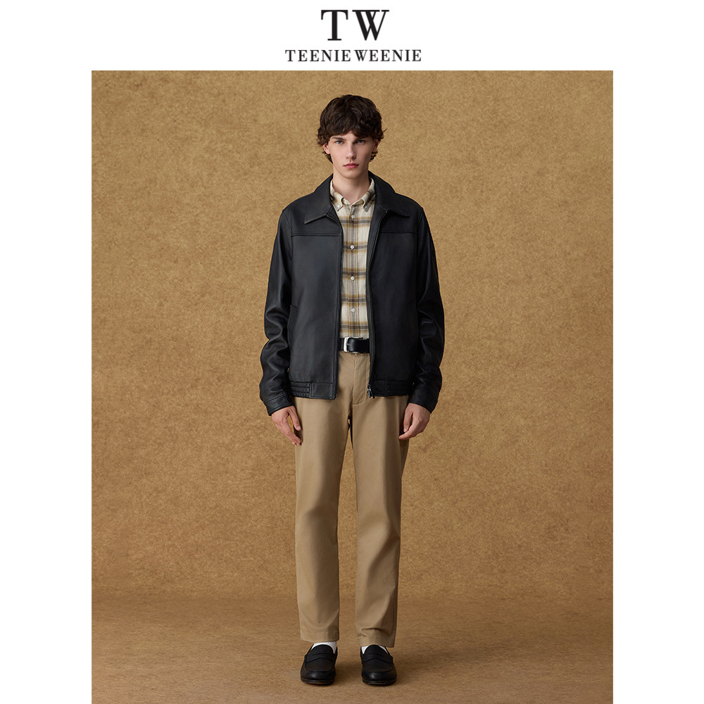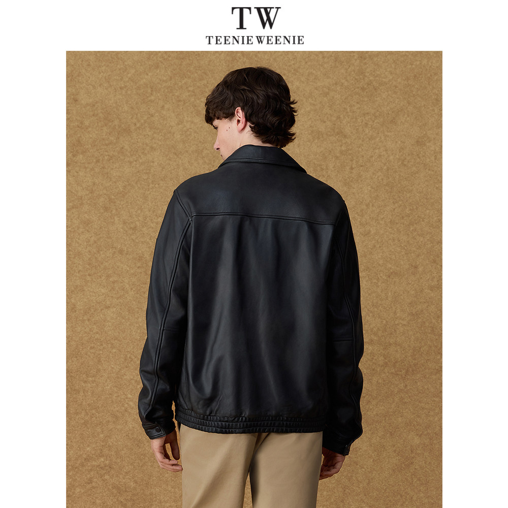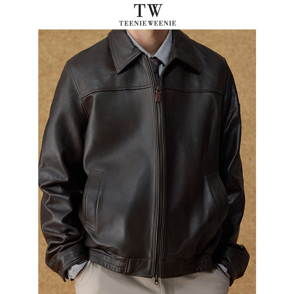 Teenie Weenie小熊男装雨伞熊压花复古美式真羊皮夹克外套