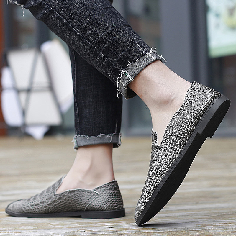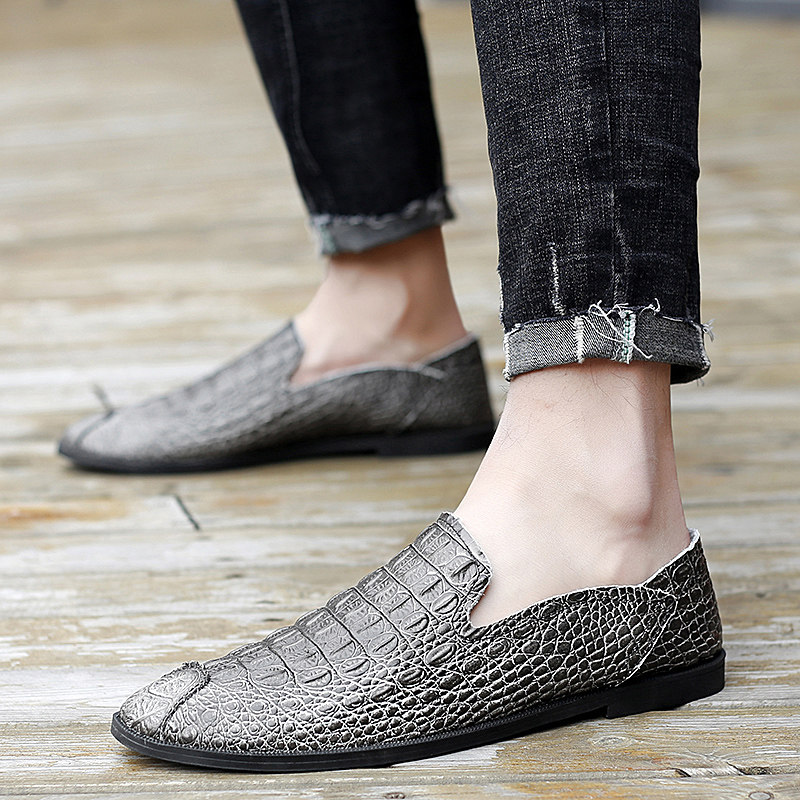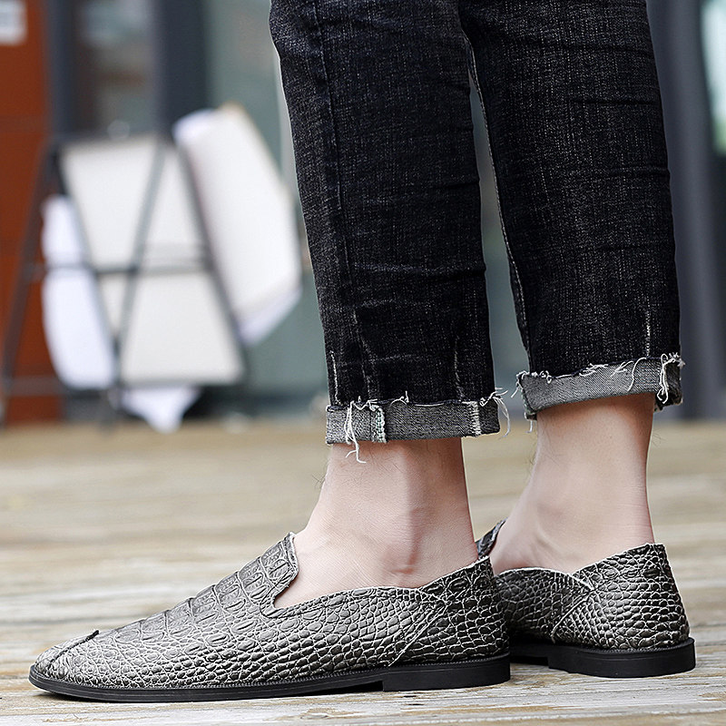 尖头休闲男皮鞋2025新款轻便软低真皮小码时尚潮流一脚蹬豆豆鞋男