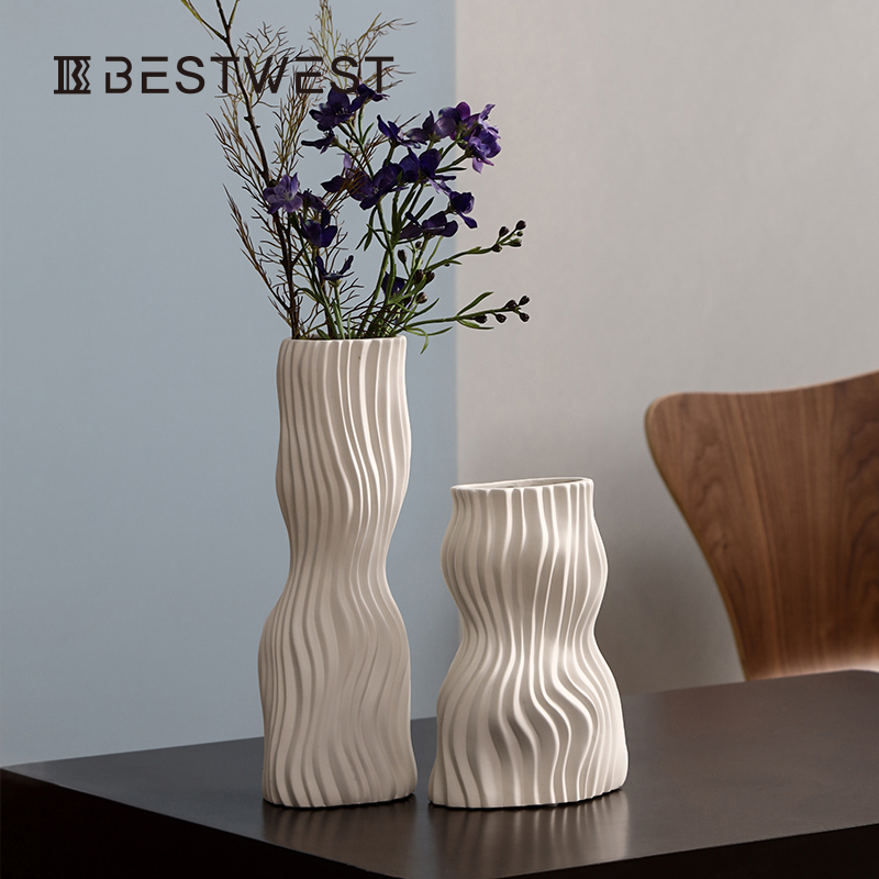 陶瓷花瓶摆件创意高级感白色小众设计感干干燥花客厅摆件插花艺术