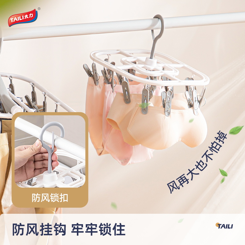 太力内衣晾衣架多功能防风多夹子宿舍阳台晒内裤神器内衣晾晒架
