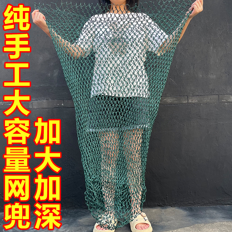 纯手工编织加粗48抄网兜加深1.2米超大号捞鱼网兜水产养殖抄网兜