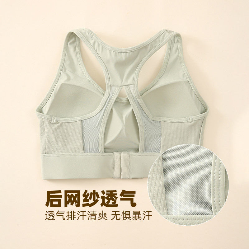 罗纹网纱美背大码运动内衣女高强度跑步防震一体聚拢瑜珈健身文胸