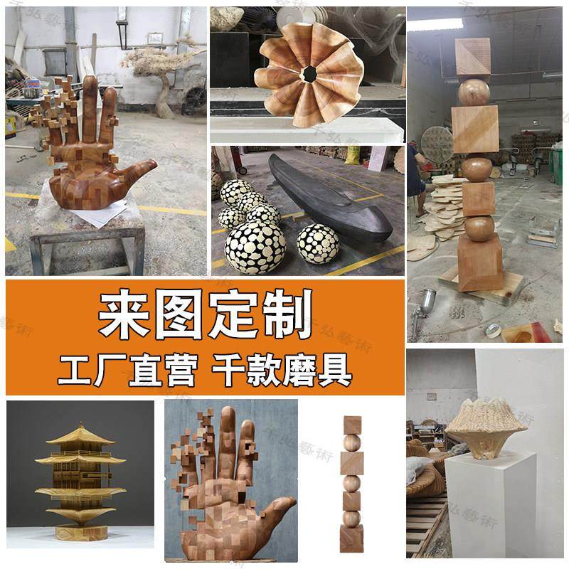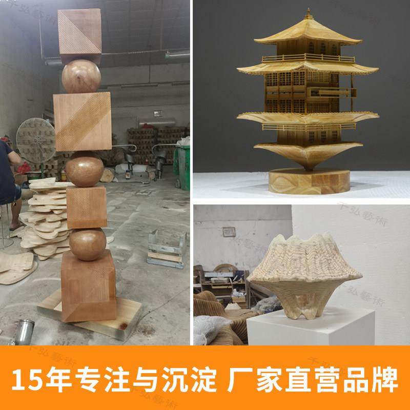 定制售楼处抽象圆木雕装置艺术大型落地摆件中式木质凉亭建筑美陈