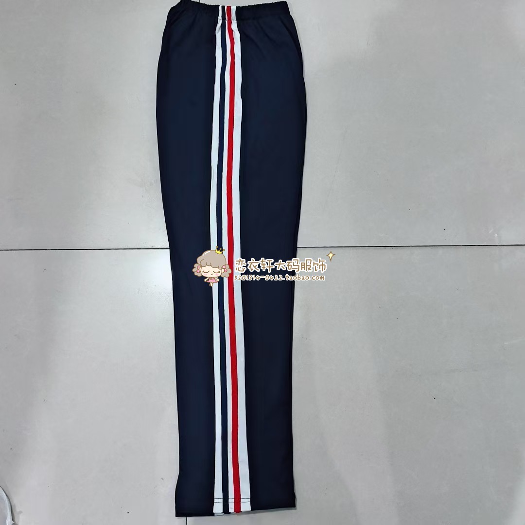 北京陈经纶学校藏蓝色白宽杠贴大红藏蓝条纯棉校服裤直筒运动宽松
