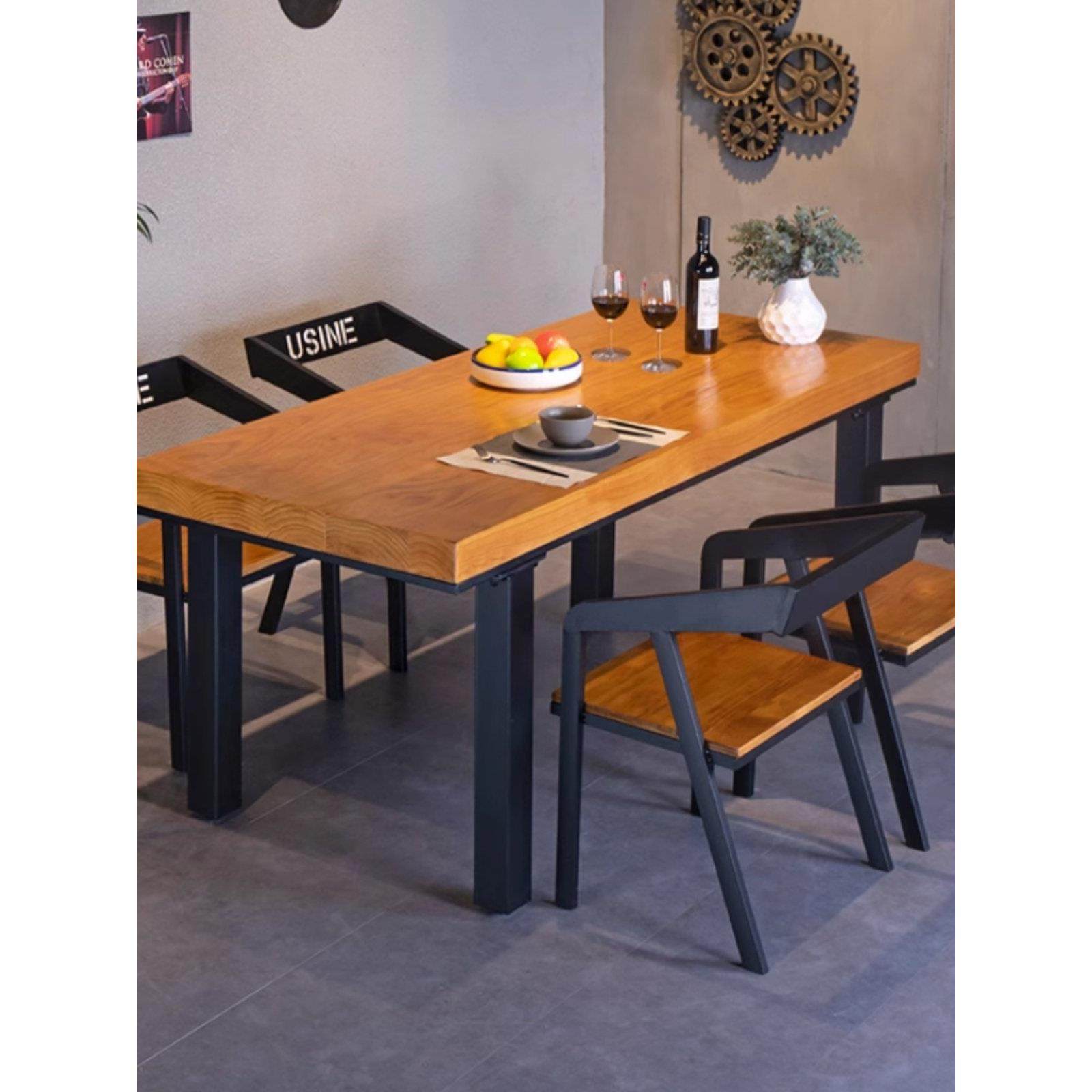工业风铁艺实木餐桌椅组合现代休闲咖啡餐厅小户型火锅店酒吧桌子