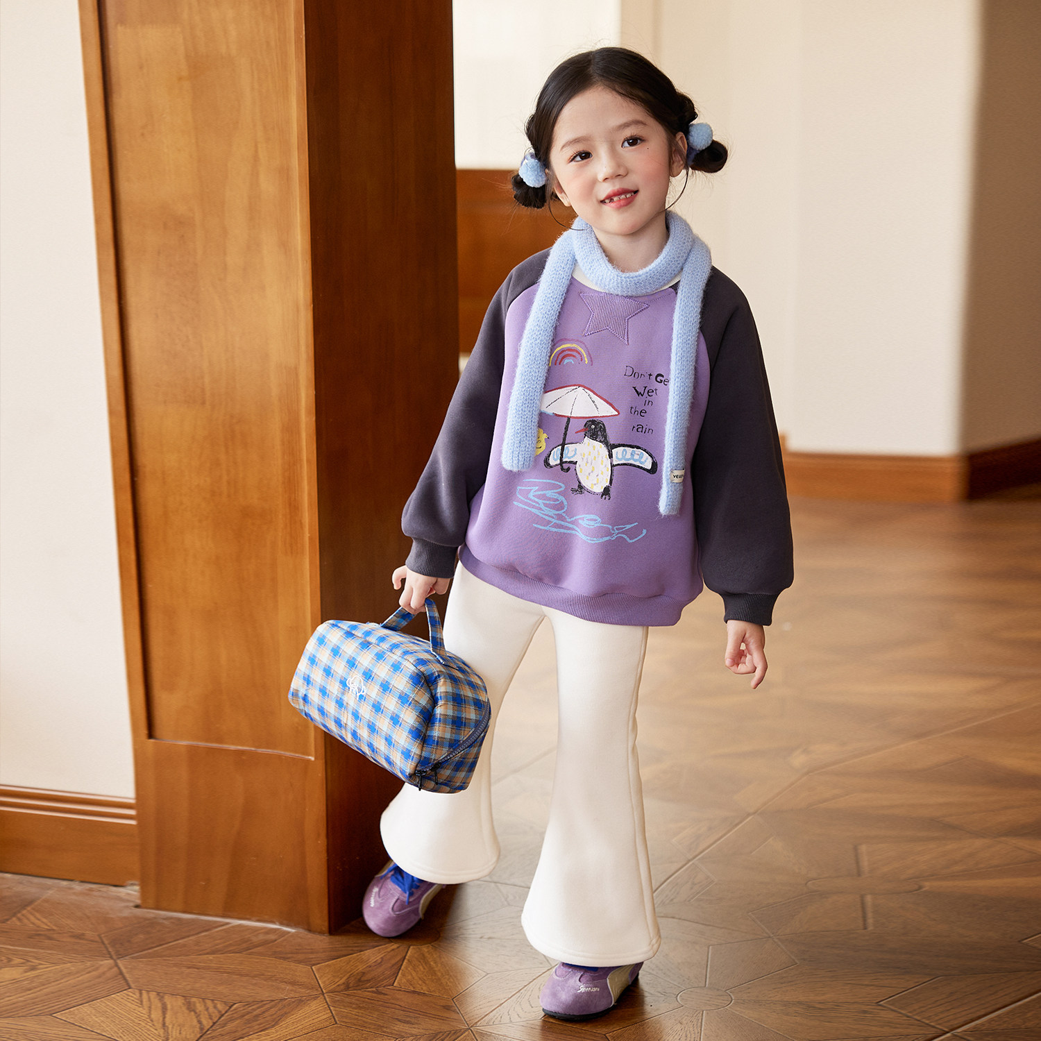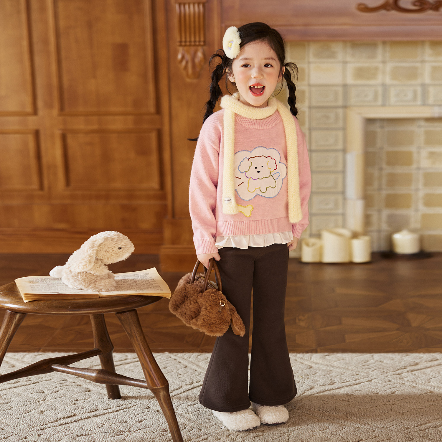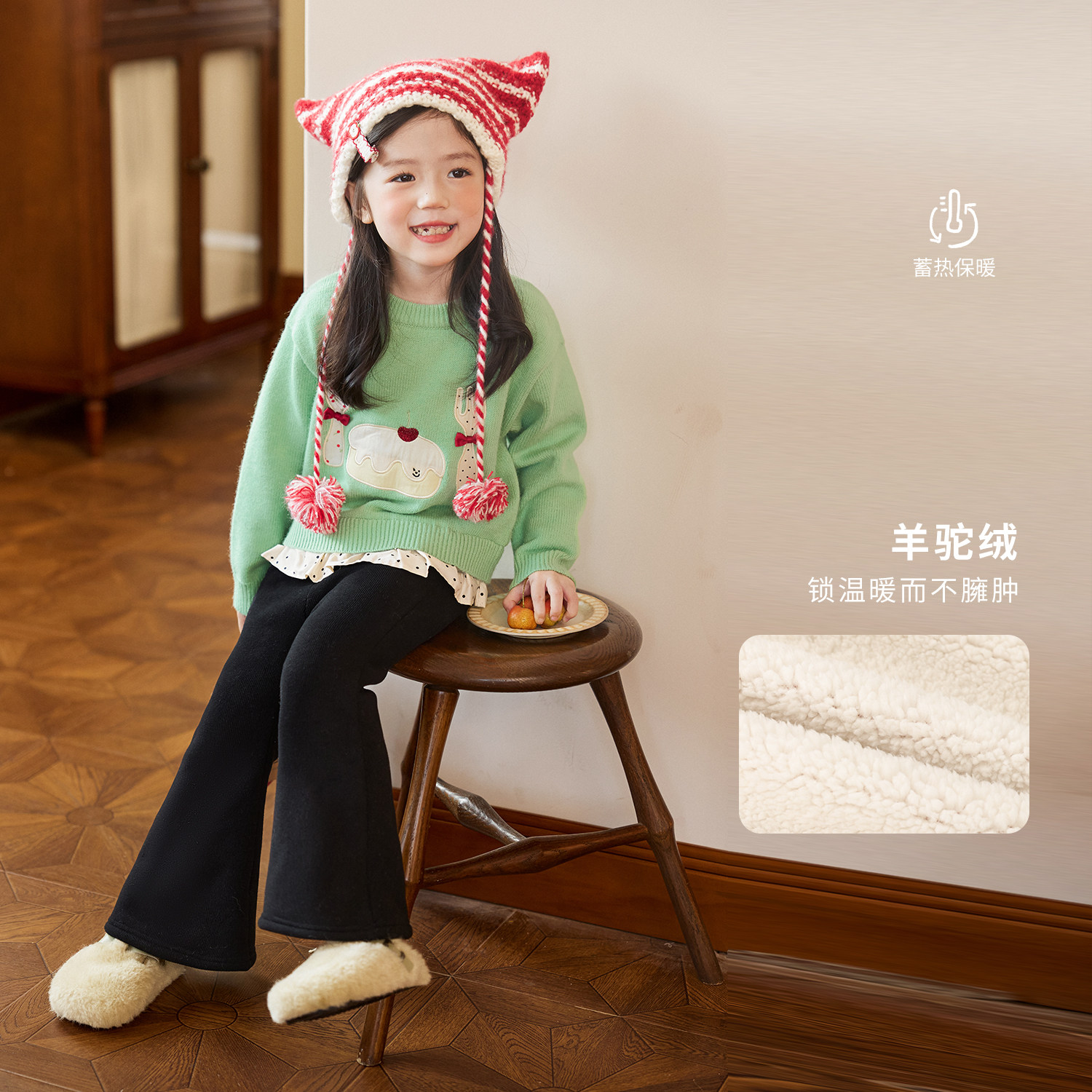 小O宝Okids童装女宝宝加绒喇叭裤2025冬季女童洋气保暖加厚打底裤